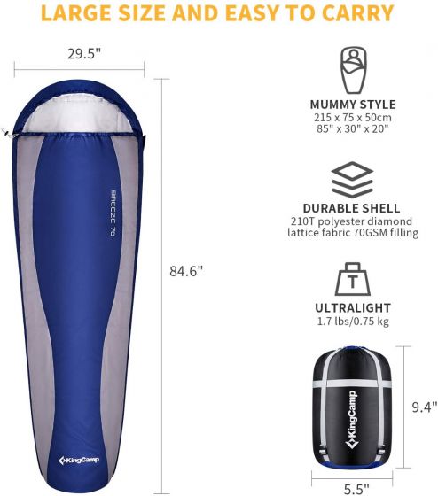 Спальный мешок KingCamp BREEZE 70(KS2020) L BLUE