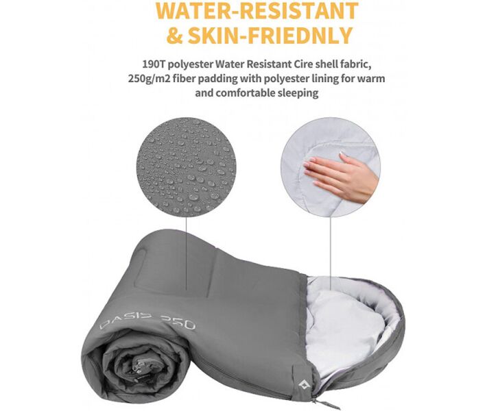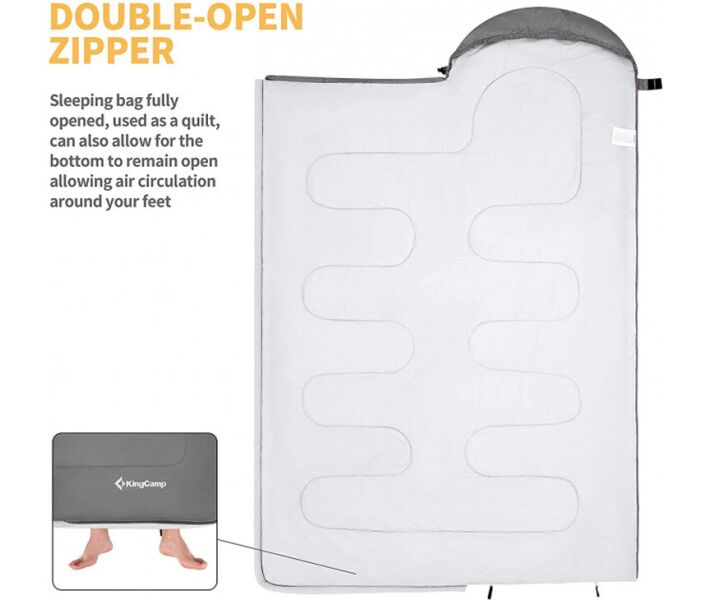 Спальный мешок Kingcamp Oasis 250XL KS3222 R Mid grey (KS3222_MEDIUMGREY_R) — спальный мешок-одеяло, который предназначен для комфортного отдыха под ночным небом, во время похода, активного туризма. Модель размера XL имеет большую ширину, по сравнению с обычными спальными мешками. Верх выполнен из высококачественного, прочного и износоустойчивого полиэстера и имеет водоотталкивающее покрытие; наполнитель — хлопок. Застегивается молнией (двусторонняя). С таким спальным мешком вам будет гарантирован спокойный, комфортный и здоровый сон в любом путешествии! Такой спальный мешок хорошо сохраняет тепло, компактный в сложенном виде и имеет анатомическую форму. Он легко поместится в походном рюкзаке или не займет много места в багажнике автомобиля. Высокое качество материалов и фурнитуры гарантируют длительный эксплуатационный срок и комфорт пользователям. Комфортная температура использования: +12 °C/+7 °C, экстремальная: -3 °C.