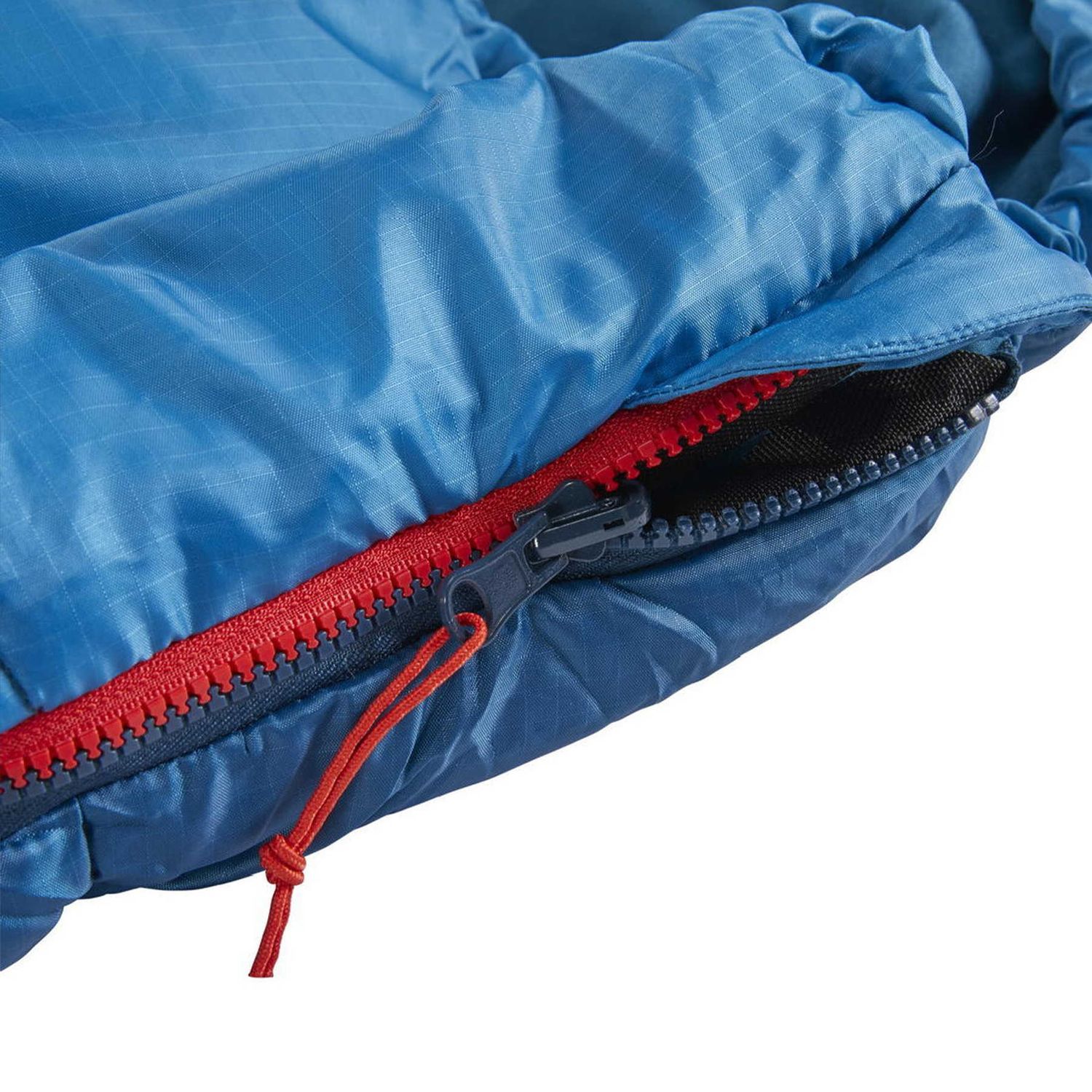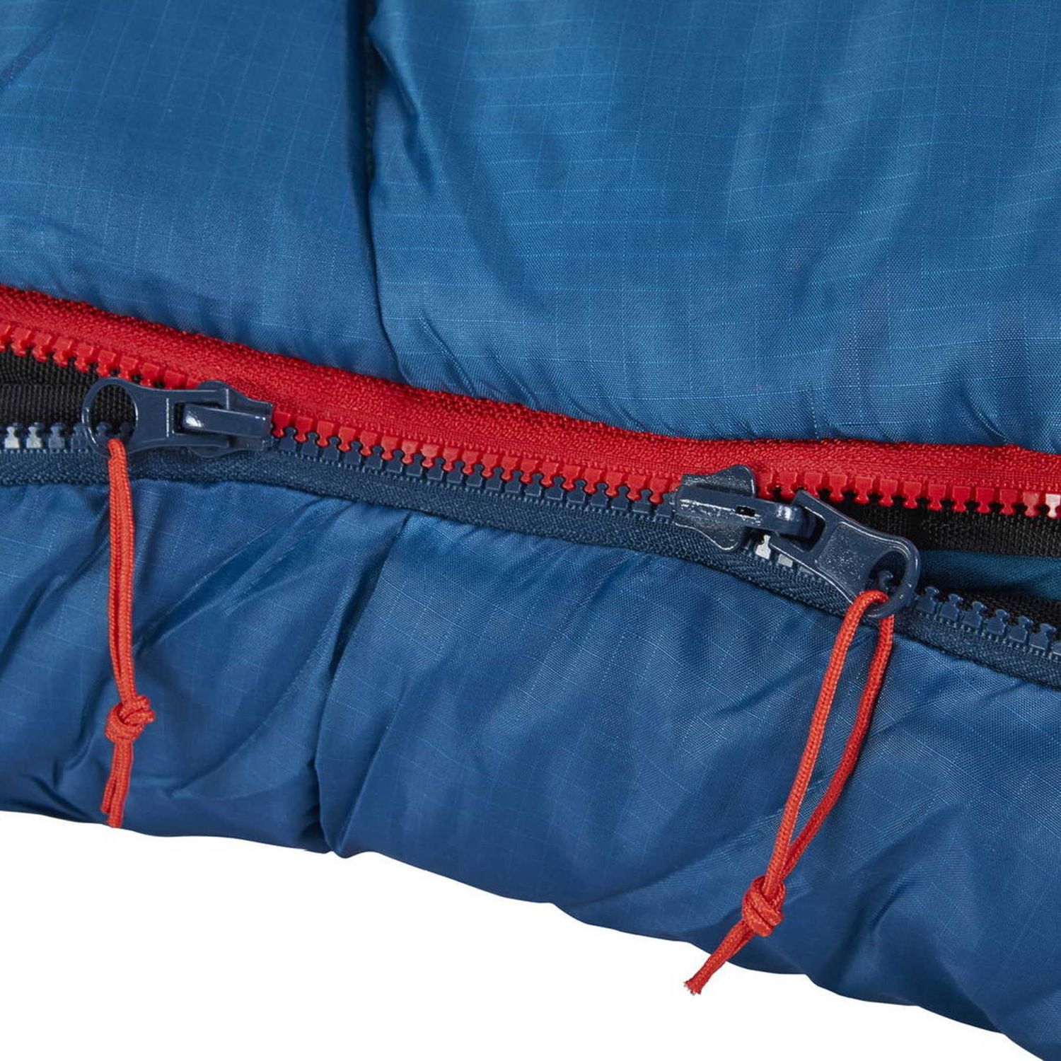 - Молния оснащена двумя замками, верхний из которых – двусторонний. Таким образом, молния удобно расстегивается и застегивается как снаружи, так и изнутри, позволяя также открыть нижнюю часть спального мешка для проветривания.