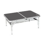Ножки регулируются по 4 высотам (35/50/67/81). Кроме того, стол можно очень компактно хранить как модель-чемодан благодаря съемным ножкам и разделяемой столешнице. Кроме того, стол оснащен сеткой под столешницей из МДФ для хранения вещей и ручкой, благодаря которой стол удобно переносить. В сложенном виде (ДхШхВ): 60x7x45 см.