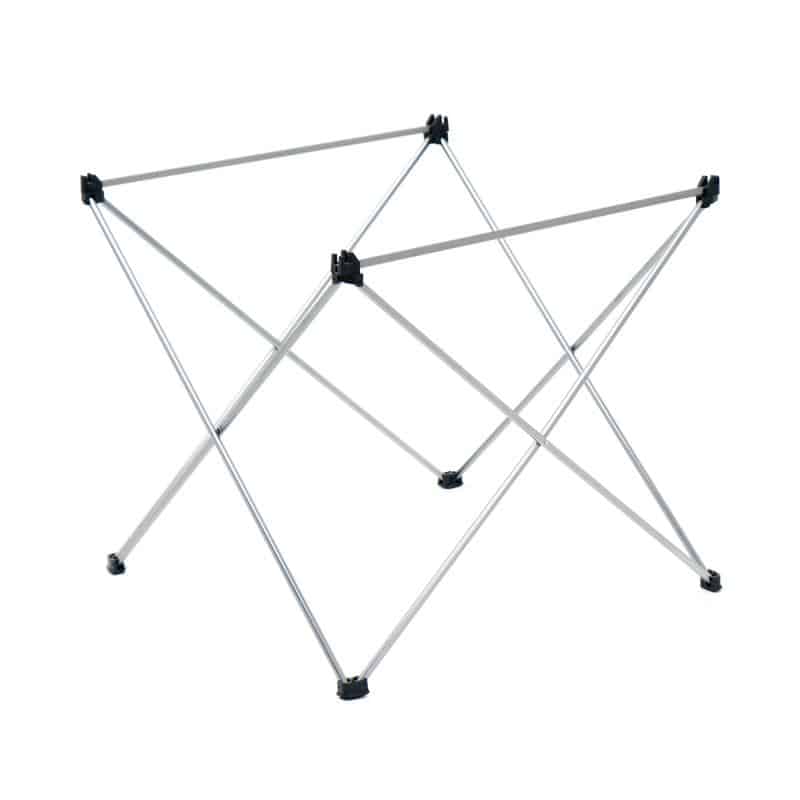 Чтобы разложить или сложить не нужно много времени или лишних усилий, все продумано и облегчено, собрать сможет кто угодно. Необходимо просто вытащить из чехла, раскрыть конструкцию и зафиксировать профиль в специальные пазы и сверху подсоединить столешницу. Процесс сборки займет считанные секунды. При сборке конструкция дополнительно фиксируется лентой, чтобы уменьшить размеры и облегчить упаковку в чехол.