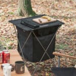 Специальная коробка позволяет хранить различные вещи, которые могут понадобиться во время пребывания на природе. Располагаться за таким столом будет очень удобно. В его состав вошла высококачественная ткань 1680D Oxford, также представлена фабричная нейлоновая сетка. Ткань при необходимости легко очищается, хорошо противостоит повреждениям, а еще она отлично пропускает воздух.