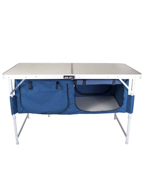 Стол тумба Ranger ТА-519 Rcase – это практически своя кухня на природе. Двухсекционная полка закрытого типа отлично подходит для хранения продуктов, посуды, одежды. Полка сделана из непромокаемого и очень прочной ткани. Каждая полка застёгивается молнией и имеет доступ с 2-х сторон, нет необходимости обходить стол, все под рукой всегда. Для плотности полки на дно укладывается пластины из пластика. По бокам есть ещё по три кармана для столовых приборов и других необходимых мелочей.