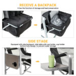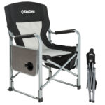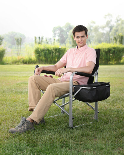 Портативное складное кресло KingCamp для кемпинга очень удобно использовать в качестве режиссерского кресла. С правой стороны находится стол с подстаканником, на котором можно хранить бутылку с водой или закуску. Слева есть сумка-холодильник, которая, как термостат, поддерживает постоянную температуру. Вы можете положить в него еду или холодные напитки для хранения или налить в него горячую воду, чтобы поддерживать температуру. Благодаря складной конструкции стул можно легко открыть или сложить за секунды. В сложенном виде размер составляет всего 93 × 58 × 18 см, что делает его портативным и достаточно легким, чтобы его можно было носить с собой как небольшой багаж в поездке. Наш стул многоцелевой, он идеально подходит для использования в помещении или для занятий на свежем воздухе для пикника, кемпинга, пляжа, вечеринок во внутреннем дворике и рыбалки.\