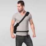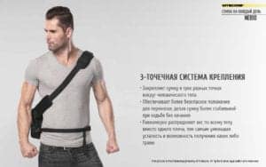 Плечевой ремень — имеет более широкую форму и оснащенный регулирующими длину креплениями, за счет такой ширины и плотности плетения нити, ремень способен выдерживать основную нагрузку, которая будет производится на него. На краях плечевого ремня размещены практичные карабины способные выдерживать большую нагрузку, которая передается с самой сумки к ремню, но тем самым простым движением их можно отстегнуть и сложить в сумку в случае надобности. На одной части ремня имеется специальное расширение с системой Velcro, такое введение разрабатывалось для того, чтобы пользователь смог всегда иметь у себя под рукой необходимые принадлежности за счет расширению с помощью модульного кармана. Также основной плечевой ремень комплектуется удобным наплечником. Представленный наплечник имеет практичные габаритные размеры, и регулирующую систему за счет которой он может разместиться в удобном для пользователя месте. В случае надобности наплечник крепится на ремень с помощью язычков на системе Velcro, за счет которой его можно отстегнуть и положить внутрь сумки.
