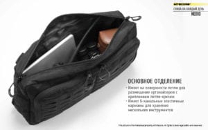Новинкой этого года в серии сумок от Nitecore является вместительная сумка NEB10. Серия сумок NEB была разработана изначально для использования как туристами для небольших путешествий или для ежедневного использования, например, вылазок на природу или просто прогулок на свежем воздухе. В основе использованных материалов для изготовления сумки была взята самая прочная и надежная ткань Cordura 1050D. Хранимое пространство практично разделено на два отделения: основное и переднее. Также в основе комфортного открывания лежит высококачественная фурнитура с большими и очень удобными кольцами, за которые можно произвести открывание.