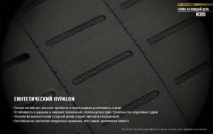 Hypalon — это материал, который обладает значительно небольшим весом, сравнительно высокой прочностью и отличной устойчивостью от воды и грязи. Материал обладает превосходной устойчивостью к разрыву и имеет специальное применение в строительстве штурмовых судов. За счет использования высокоточного лазера, который обеспечивает высокоточную резку материала, и преимуществом такой технологии является то, что лазер создает чистый и гладкий край, который никогда не распуститься и прослужит продолжительный период активного использования. Также огромным преимуществом использованной системы 6/12, является то что она рассчитана на размещение модульных карманов, что позволит Вам расширить место хранения переносимых предметов.