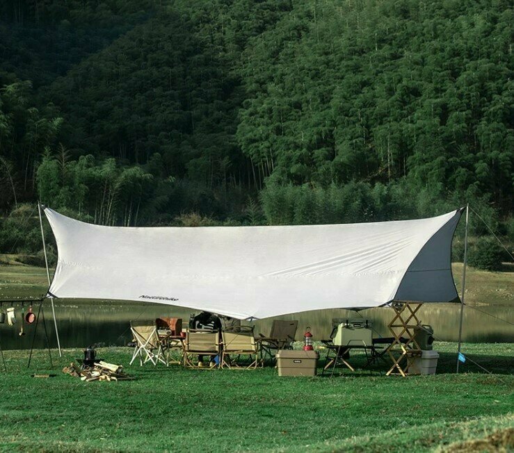 Тент для кемпинга Naturehike Moraine NH19TM004, 150D/Silver Coated, 680*576 см, серый (с двумя стойками)