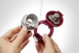Открыть крышку можно одной рукой, механизм сконструирован так, чтобы предотвратить появление брызг при открывании — вы нажимаете кнопку и крышка немного приоткрывается, давая возможность стечь образовавшимся каплям. Полностью крышка распахнется только после того, как вы отпустите кнопку.