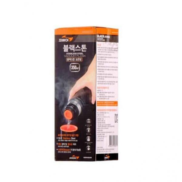 Kovea KDW-BS350 Black Stone — легкий термос из антикоррозийной, нержавеющей высококачественной стали, с емкостью объемом 350 миллилитров. Оборудован двойной автоматической пробкой кнопочного типа, с клапаном для уменьшения потери тепла и повышения удобства разлива. Kovea KDW-BS350 Black Stone снаружи покрыт цветным защитным лаком. Сохраняет температуру жидкости: до 12 часов – горячие и до 24 часов – холодные. Если залить в термос Kovea KDW-BS350 Black Stone жидкость температурой 95 градусов, через сутки температура упадет до 43.