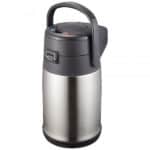 Термос ZOJIRUSHI SR-CC оснащён помпой и предназначен для домашнего или любого другого стационарного использования. Выпускается в объёмах 2.2 и 3.0 литра, что позволяет использовать его в компании из нескольких человек для хранения горячих или холодных напитков. Колба из нержавеющей стали способна выдерживать высокие перепады температуры и не подвержена повреждениям во время опрокидывания. Широкое горлышко диаметром 70 мм рассчитано на лёгкий доступ внутрь, например, при опускании кубиков льда. Верхняя откидная крышка термоса оснащена клавишей с помпой, позволяющей наливать напиток без открывания. Наличие специального фиксатора, предотвратит случайное нажатие помпы во время транспортировки изделия. На дне термоса находится поворотная стойка, благодаря которой термос легко вращается вокруг своей оси, стоя на столе.