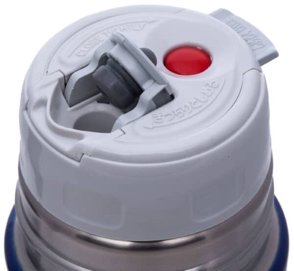 Клапан крышки выполнен из высококачественных материалов. Представляет собой кнопочную конструкцию, в которой одна кнопка его открывает, а вторая соответственно закрывает. Конструкция сделана так, что при закрытии термоса с открытым клапаном той закрывается автоматически. Особая конструкция позволяет налить очень аккуратно и без брызг Ваши напитки. Все очень легко разбирается для промывки. Так что, вы не будете чувствовать суп в вашей чаи.
