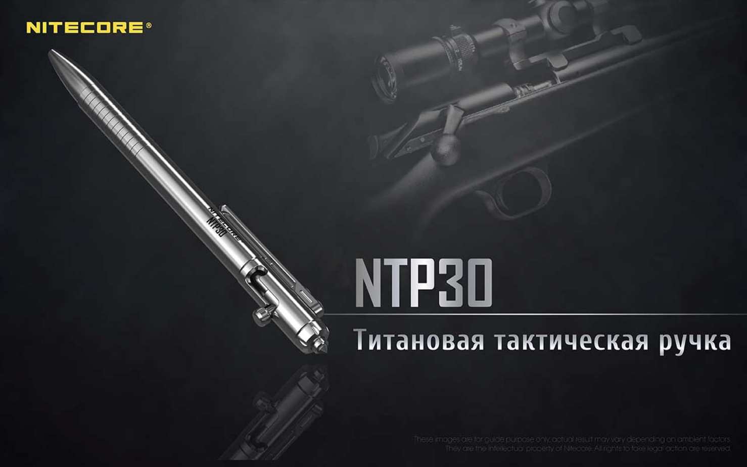 Тактическая ручка от компании Nitecore, оборудованная новой системой открывания встроенных инструментов – это Nitecore NTP30. Главной особенность нового тактического инструмента, является наличие системы затворного механизма, позволяя пользователю выбирать между стеклобоем из вольфрамовой стали и ручкой для письма. Представленная ручка пополняет серию тактических инструментов компании, придавая ей оригинальности и не схожести на аналогичные продукты. NTP30 может использоваться как многофункциональный инструмент для самозащиты и письма на любой поверхности.