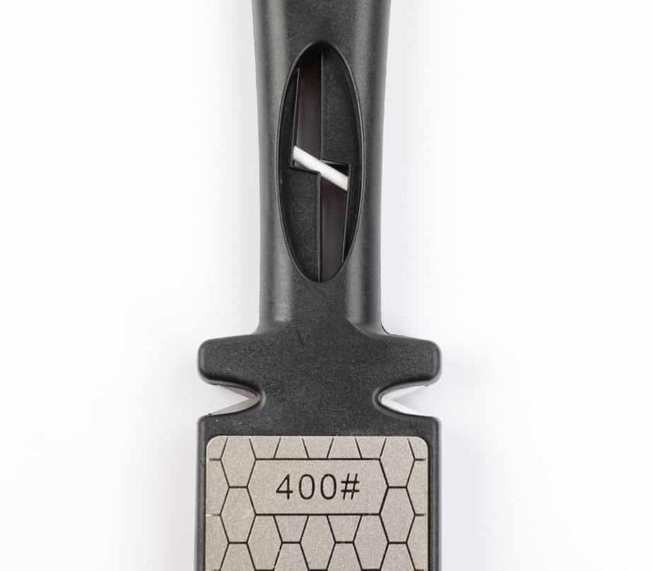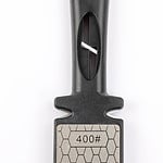 - С одной стороны находится пластина зернистостью 400 грит , предназначенная для грубой заточки лезвия с формированием необходимого угла;