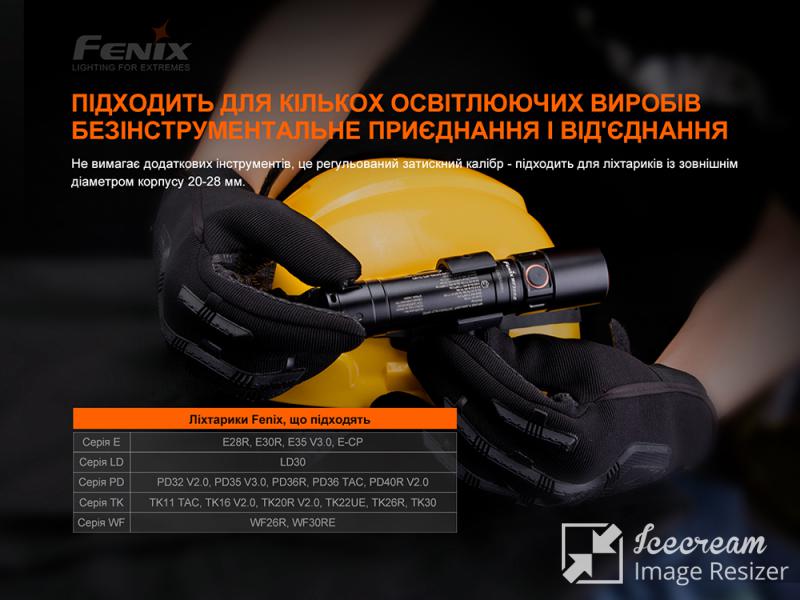 • совместимость с фонарями диаметром 20-28 мм из пяти серий Fenix;