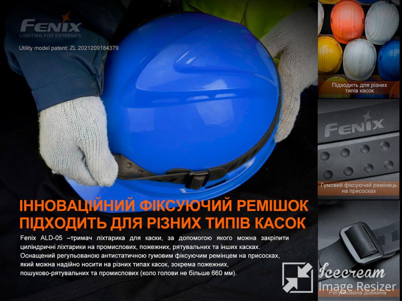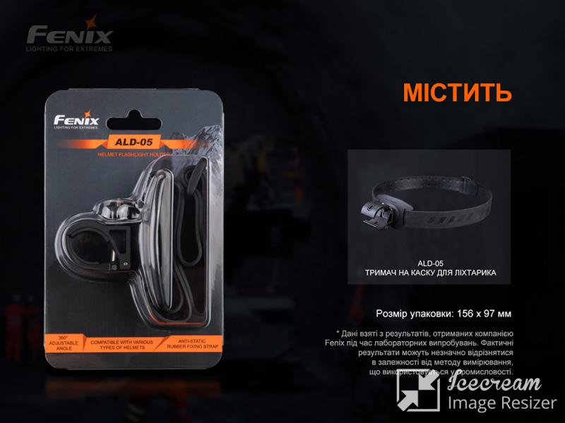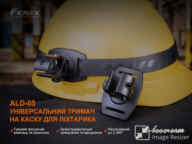 Fenix ​​ALD-05 – это нашлемный крепеж для фонарей с диаметром корпуса в пределах 20-28 мм. Его основание составляет пластиковый держатель с регулируемым углом на 360°, что позволяет направить световой луч в нужном направлении.