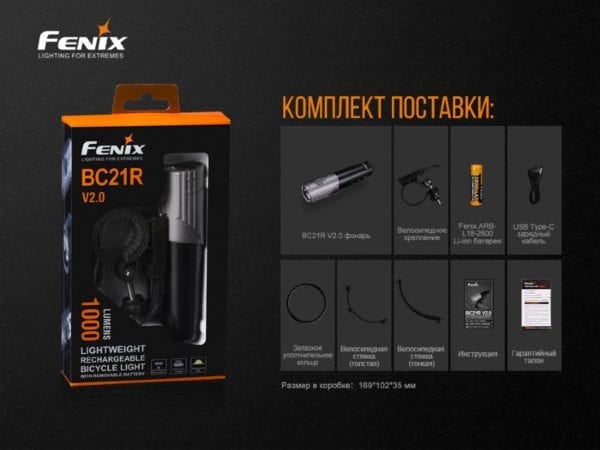 Fenix BC21R V2.0 – новинка, произведенная известной китайской фирмой. Модель получила улучшение относительно предыдущей версии BC21R. В частности, увеличился показатель светового потока прибора. Яркость велосипедной фары достигает 1000 люмен против 880 люмен прежней модели. Также уменьшился вес фонаря. Если модель BC21R весила чуть более 90 грамм, то новый прибор весит 67 грамм. Также BC21R V2.0 может похвастаться цельной металлической основой. А еще велосипедная фара поддерживает зарядку при помощи USB Type C. Наконец, он заряжается в течение двух с половиной часов, в то время как у прежней версии на это уходило четыре часа.