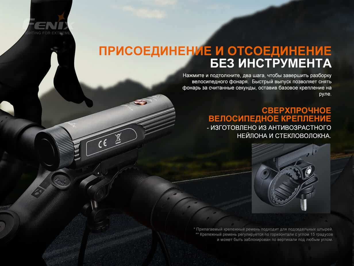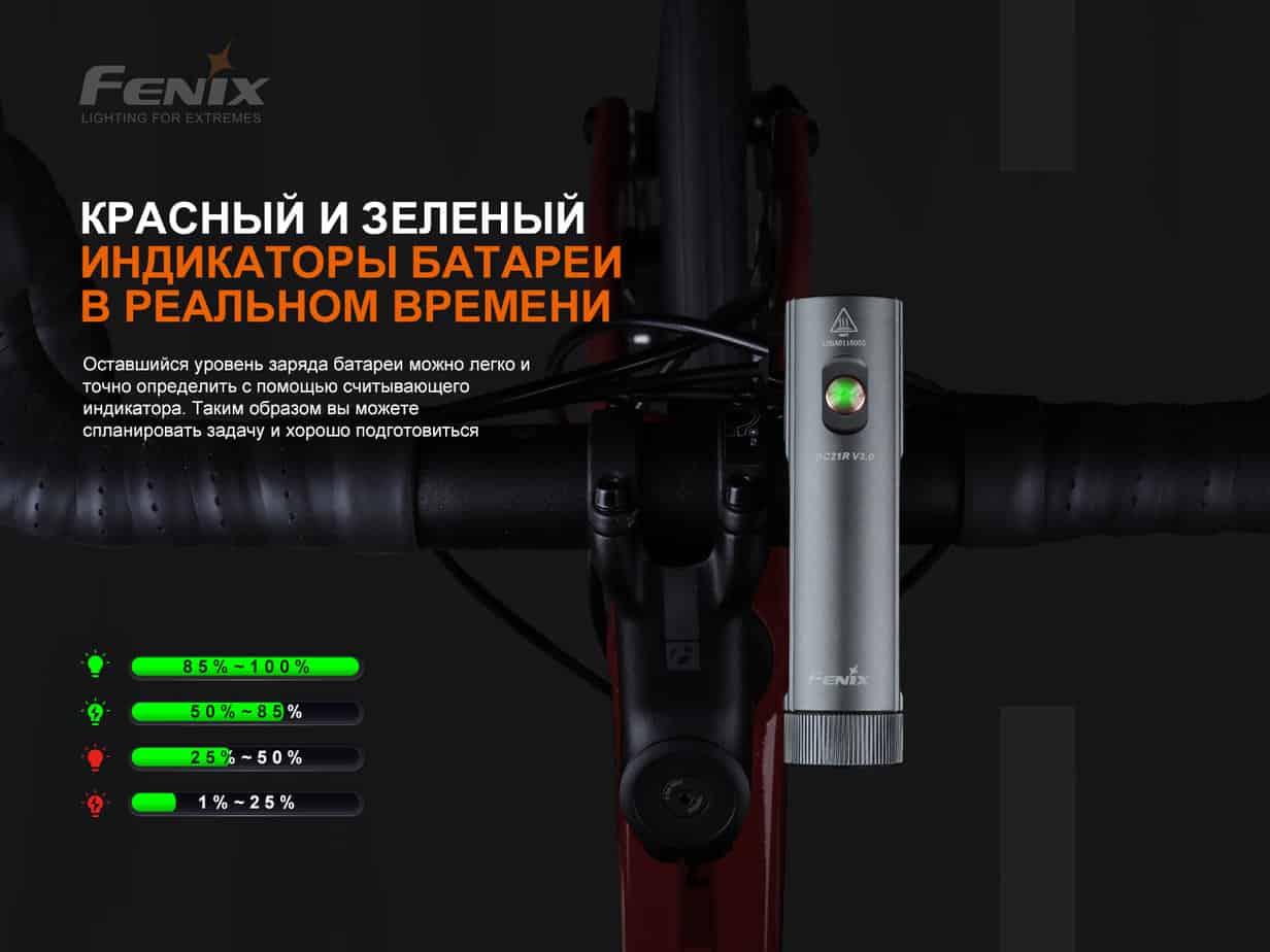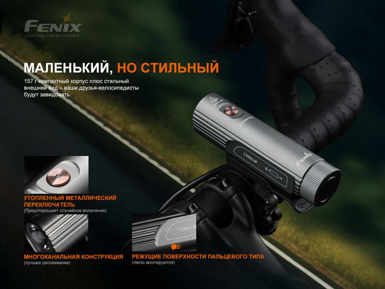 Модель Fenix BC21R V3.0 – это профессиональный велосипедный фонарь для горного и шоссейного велоспорта, подходящий для интенсивных заездов на длинные дистанции. Яркость света достигает 1200 люмен и его можно увидеть на дистанции 142 метра. Фонарь перезаряжается через USB Type-C и питается от прилагаемой батареи емкостью 18650/2600 мАч.