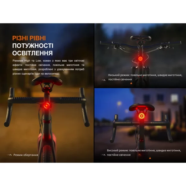 Велофара Fenix BC06R предлагает новый подход к безопасности катания на велосипеде. Широкоугольный луч света 270° дальнобойностью до 100 м обеспечивает отличную видимость для других участников дорожного движения, даже в условиях плохого освещения, например во время тумана или сильных осадков. К тому же в модели предусмотрена инновационная функция разумного торможения, которая срабатывает при быстром снижении скорости катания, увеличивая яркость света со стандартных 30 лм до 90 лм.
