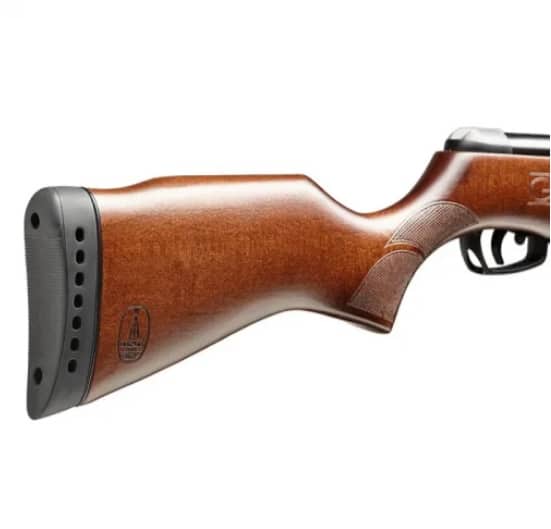 Ложе винтовки BSA Meteor EVO GRT выполнено из натурального обработанного бука со специальными насечками обеспечивающих лучшее сцепление с ладонью. Также стоит отметить наличие мягкого затыльника для более удобного прицеливания. Предусмотрено наличие открытых прицельных приспособлений в виде светонакопительного целика и мушки, но можно выполнить установку оптического прицела для более точной стрельбы на дальние дистанции.