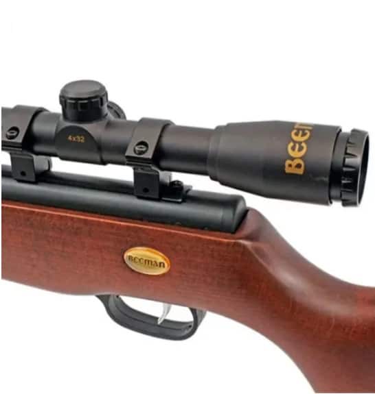 Для прицеливания используется оптический прицел входящий в комплект с диаметром линз в 32мм и 4-х кратным зумом.