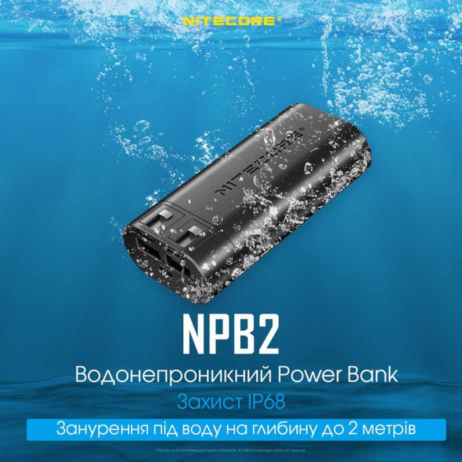 Улучшенная модель универсального в использовании портативного зарядного устройства, это Nitecore NPB2. Главной отличительной особенностью от предыдущей модели, является наличие двух активных портов для зарядки подключаемых аксессуаров. Помимо наличия двух портов для зарядки, зарядное устройство обладает невероятной производительностью, сравнительно компактными размерами, и главное является водонепроницаемым. Сбалансированные параметры емкости заряда в 10.000 mAh и сравнительно легкого веса 215 г, делает данное устройство незаменимым портативным Power Bank на время продолжительных походов, различных технических работ и других ситуаций вне дома.