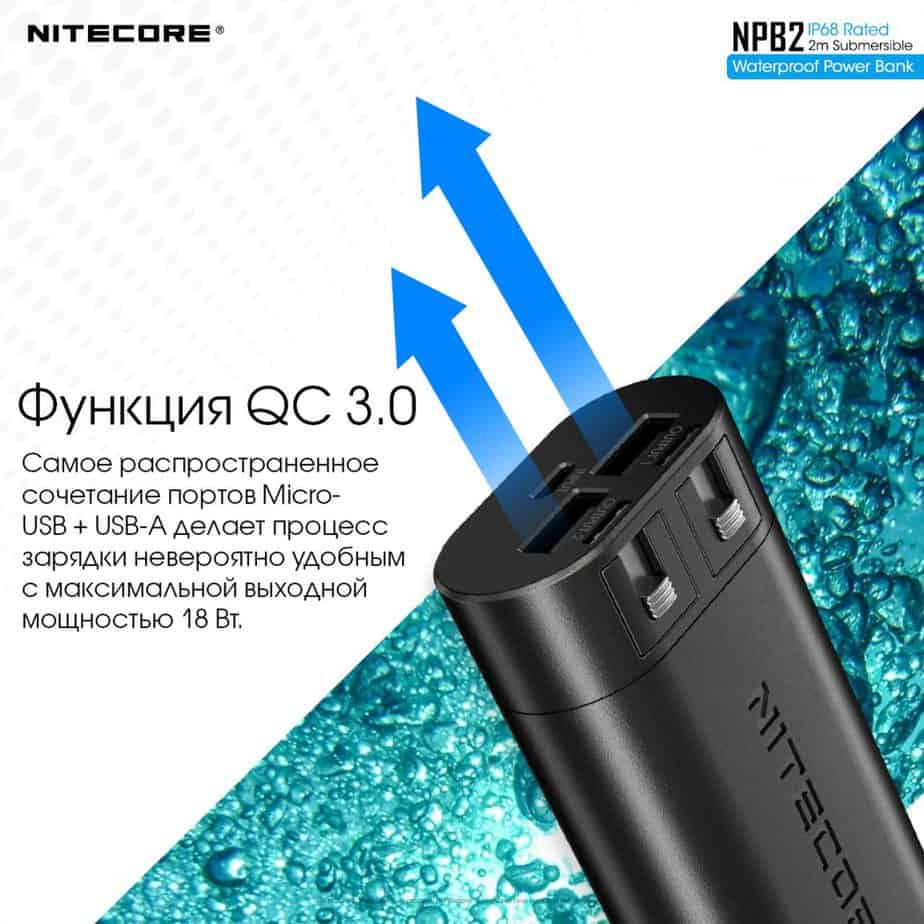 Внешнее зарядное устройство Power Bank Nitecore NPB2 (QC 3.0, 10000mAh), IP68