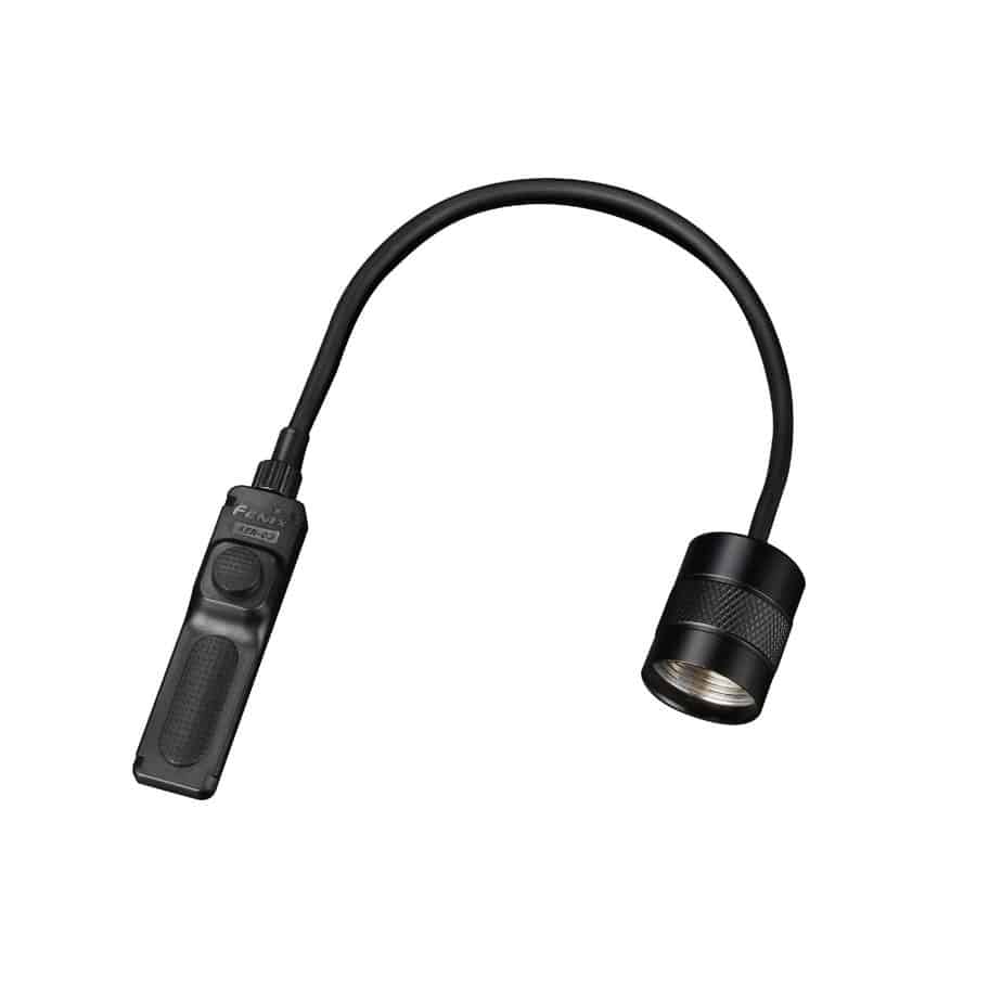 Кнопка Fenix, AER-03 V2.0 адресована охотникам, рыбакам, работникам спецслужб, игрокам в страйкболе. Она позволяет вынести на определенную дистанцию ​​механизм управления работой подствольного фонаря и заменяет собой стандартный переключатель. Корпус кнопки изготовлен из анодированного металла и похож на обычный хвостовик фонаря. Но вместо переключателя, на его торце выведен гибкий витой шнур, соединенный с контактной площадкой. Именно на этой площадке и расположены кнопки включения фонаря и выбор необходимого режима работы. Они работают совершенно беззвучно и рассчитаны на 100 000 кликов. Контактная площадка может быть практически мгновенно прикреплена к стволу с помощью липучки. Расстояние от нее до фонаря пользователь может выбирать в пределах 80 см за счет растяжения шнура.
