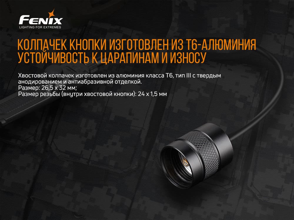 • Специализированная кнопка для тактических фонарей Fenix, производящая ток 3 А в течение длительного времени