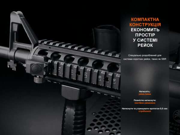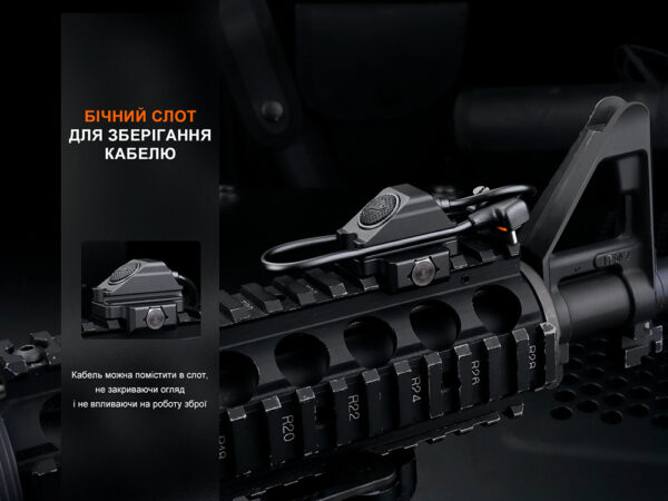 Тактический переключатель Fenix AER-06s – это революционное решение, облегчающее управление фонарем, установленным на короткоствольном оружии. Аксессуар совместим с моделью Fenix GL19R и дает пользователю возможность мгновенно активировать прибор и переключать доступные режимы освещения, не упуская цели из прицела.