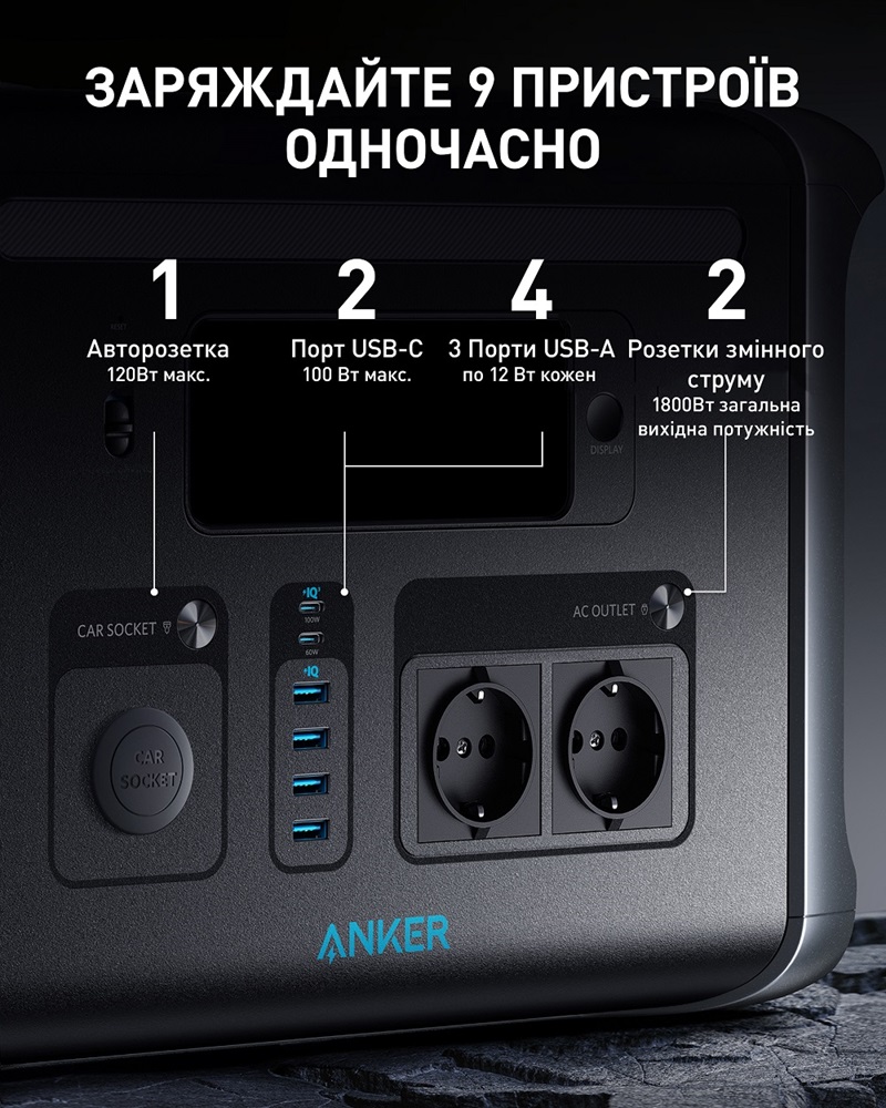 Зарядная станция ANKER SOLIX F1500 — 1536Wh/AC 1800W/100W 2xPD/4xUSB/1xCar/MPPT