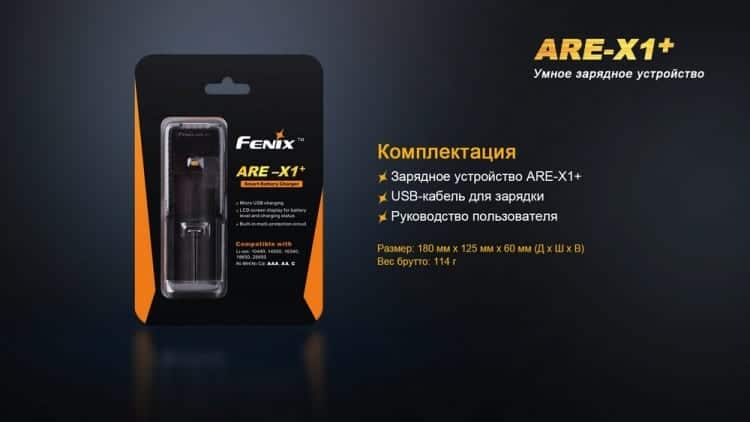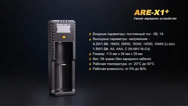 Модель ARE-X1 + работает с большим количеством разновидностей аккумуляторов, а потому отлично подходит для путешествий. Ведь одно это устройство в состоянии заменить целый набор более специализированных моделей. ARE-X1 + хорошо подойдет для Li-ion и Ni-MH аккумуляторов, которые распространены наиболее широко. Можно его использовать и для менее популярной разновидности — Ni-Cd. Обширен и список допустимых размеров. В него входят самые часто используемые АА, ААА, 14500, 18650 (во многих фонарях) элементы питания, а также 10440, 26650, 16340, С.