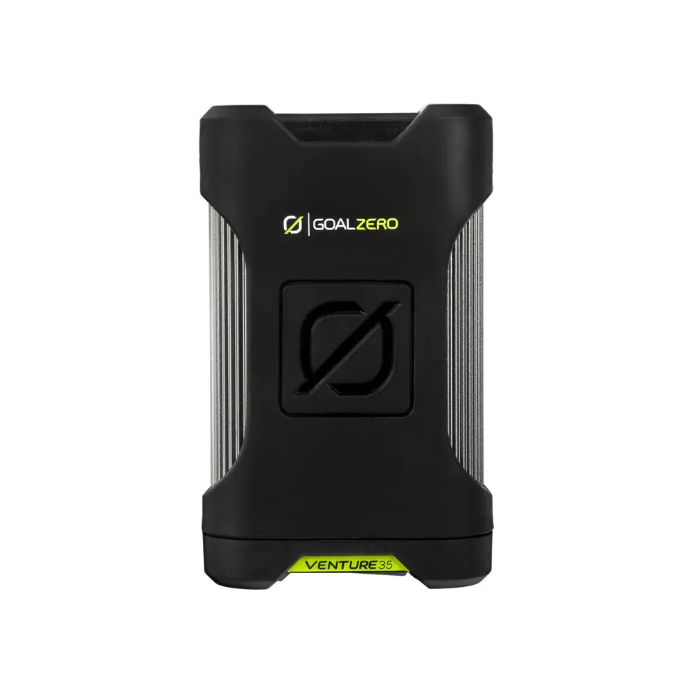 Goal Zero Venture 35 Power Bank — крепкий и водонепроницаемый внешний аккумулятор (пауэрбанк) емкостью 9000 мА-г для путешествий, туристических походов и экспедиций. Предназначен для зарядки телефонов, POV-камер (экшн-камер) и других гаджетов с питанием от USB. Заряжает до 3 устройств одновременно. Быстро заряжается от стационарных источников питания через порт USB-C Power Delivery, также адаптированный для зарядки от солнечных панелей.
