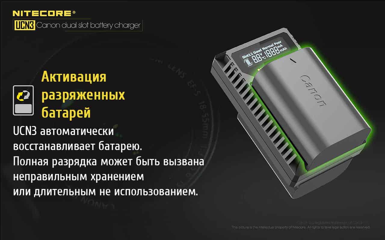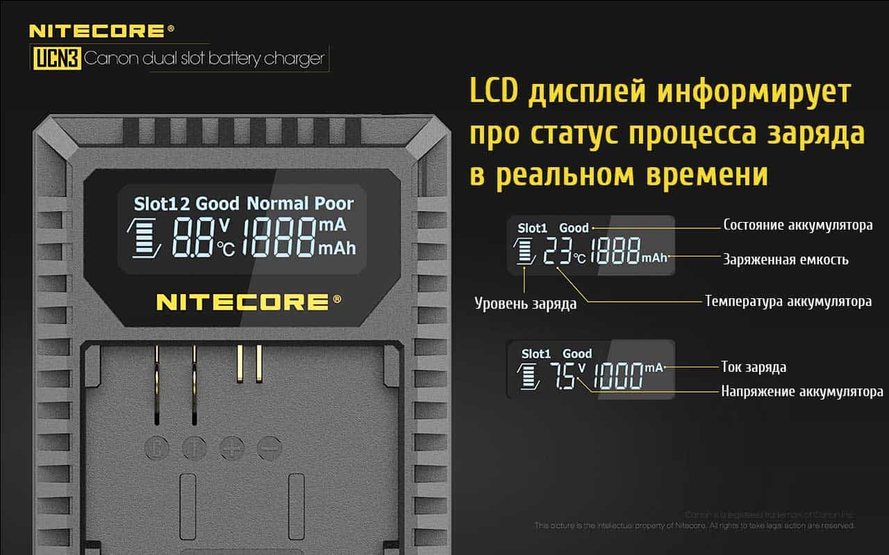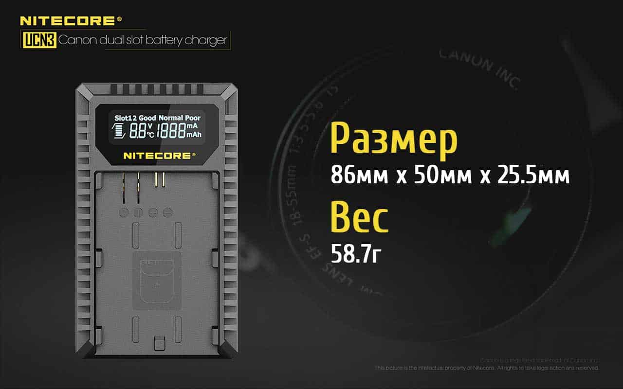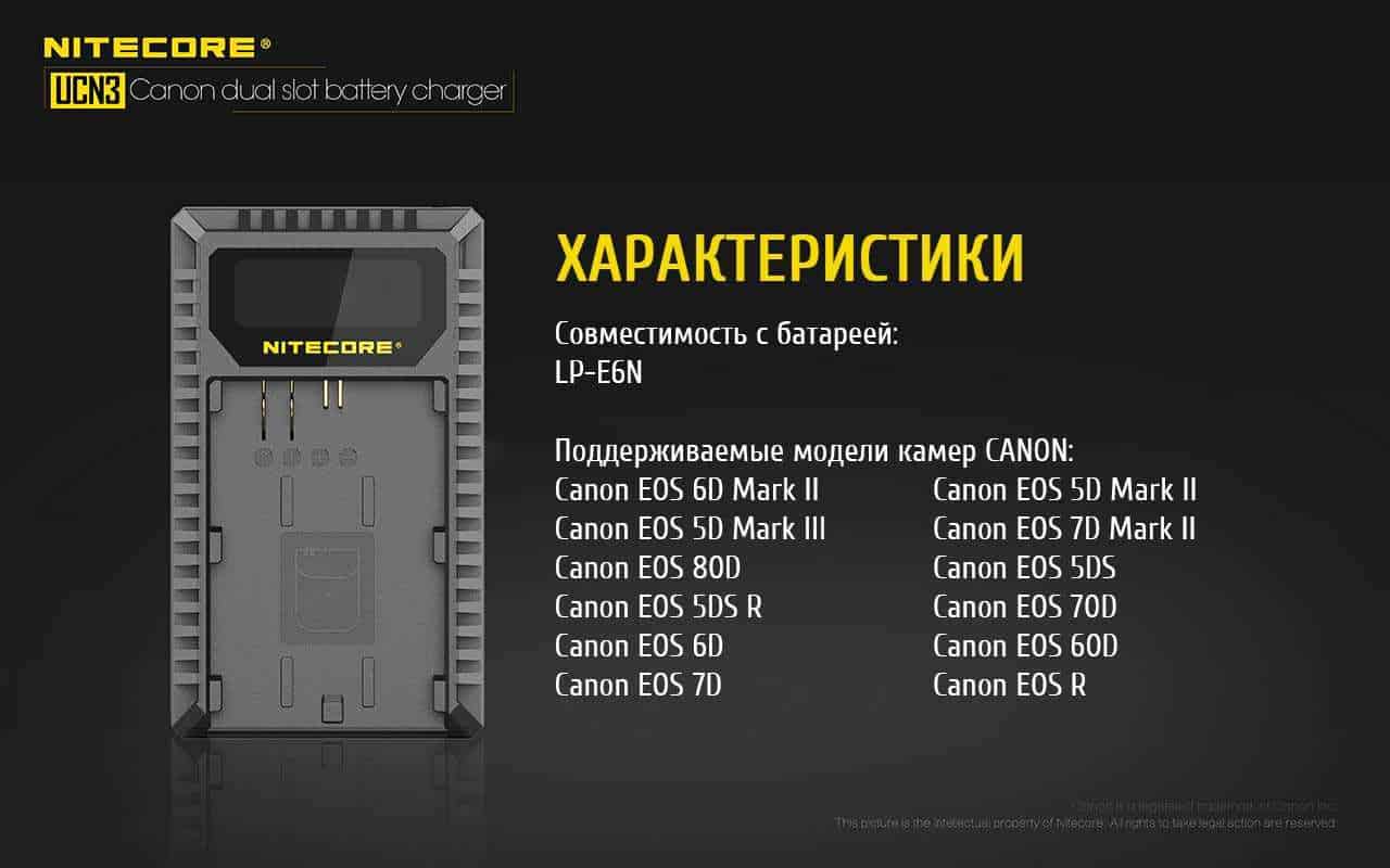 Nitecore UCN3 – разработана для аккумулятора типа Canon LP-E6N