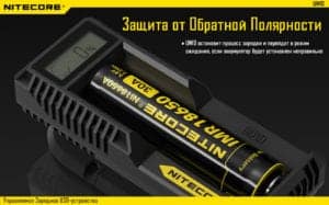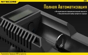 Имеющаяся встроенная программа зарядки литиево-ионных аккумуляторов, позволяет интеллектуально распределить входящее напряжение на элемент питания и своевременно меняя силу тока, такое действие происходит тогда когда аккумулятор начинает менять свою температуру и в том случае когда ёмкость аккумулятора подходит ближе к заполнению. При полной ёмкости аккумулятора зарядное устройство автоматически отключается при этом не позволяя разрушатся электролиту. С наличием подпруженного слайдера, предоставляется возможность размещения элементов питания разного размера. Для более информативной индикации статуса зарядки используется LCD дисплей высокого разрешения, на котором достаточно точно отображается уровень заряда с точностью до 0.1V. Зарядка работает по принципу максимального сохранения аккумулятора на более долгий срок службы, и со встроенной защитой от обратной полярности,  что при неправильном размещении элемента питания зарядное устройство перейдет в режим ожидания.