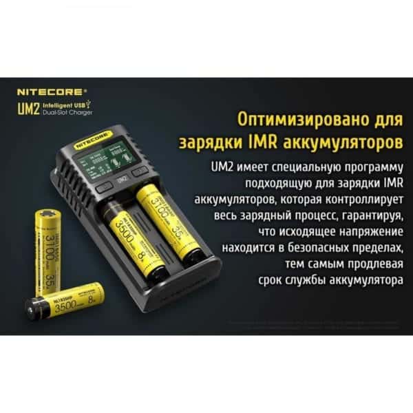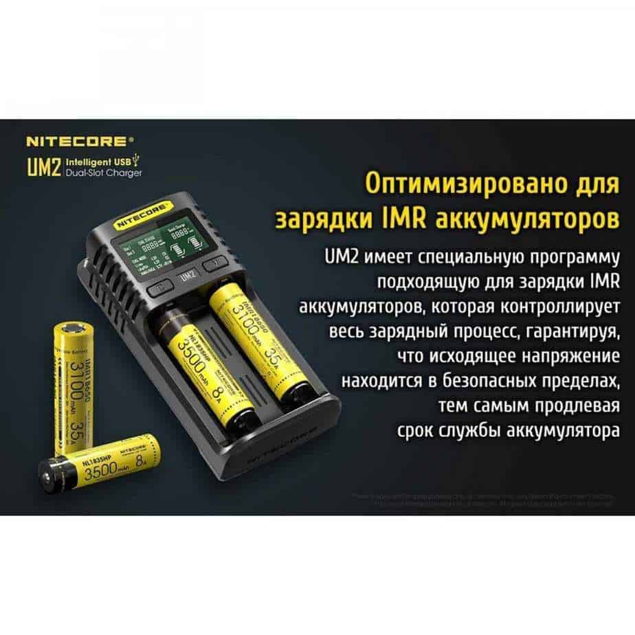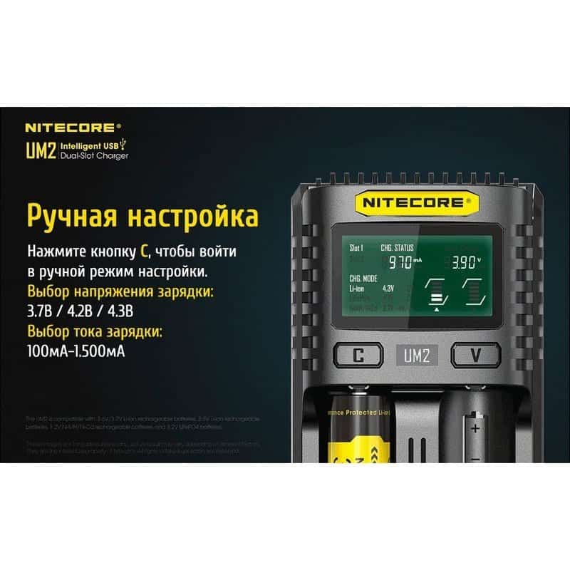 Совершенно новое зарядное устройство, предназначенное для одновременной зарядки двух элементов питания разного типоразмера – Nitecore UM2. Представленное устройство может заряжать не только разные по типоразмеру, но и разные по объёму аккумуляторы. Основным преимуществом зарядного прибора от компании Найткор, является встроенная инновационная технология быстрой зарядки по технологии Quick Charge 2.0, обеспечивающая при максимально исходящем токе в 1.5А, зарядить за 2 часа до 80% заряда аккумулятор емкостью 3500mAh.