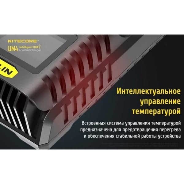 Новая модель зарядного устройства поддерживающего быструю зарядку – Nitecore UM4. Представленная новинка предусматривает одновременную зарядку сразу четырех аккумуляторов, разного типоразмера и емкости. Инновационное внедрение в зарядное устройство технологии Quick Charge 2.0, позволит пользователю значительно уменьшить время ожидания заряда требуемого элемента питания. С помощью данной технологии, устройство Nitecore UM4 может заряжать с исходящим током в 1.5А на один слот, также максимальный ток будет доступен и для двух аккумуляторов. Также благодаря большому исходящему току, зарядка элемента питания до 80% емкостью 3500mAh займет всего лишь 2 часа.