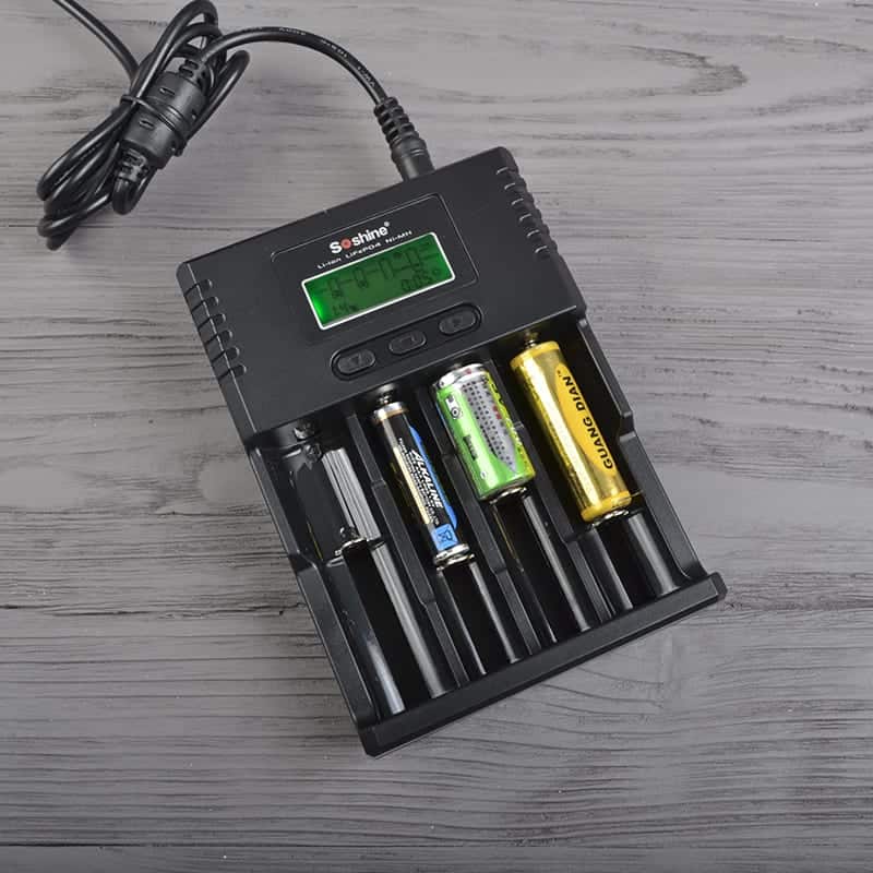 Компания Soshinе Co., Ltd продолжила разработку универсальных зарядных устройств — Soshine H4 — это лучшее универсальное зарядное устройство для Li-ion/LiFePO4/Ni-Mh с LCD-дисплеем и возможностью подключения через автоадаптер. Данное зарядное устройство имеет уже 4 независимых канала, которые позволяют заряжать одновременно разные типы аккумуляторов. Так же отличительной особенностью является возможность выбора зарядного тока для каждого из 4 слотов: 1A/500mA/250mA. На дисплее отображается процесс и время заряда, тип аккумулятора и его напряжение, так же можно увидеть какую емкость «впитал» в себя аккумулятор. Так же данное зарядное устройство определяет состояние аккумулятора и «плохой» аккумулятор заряжать не будет — на дисплее Вы увидите «poor cell»
