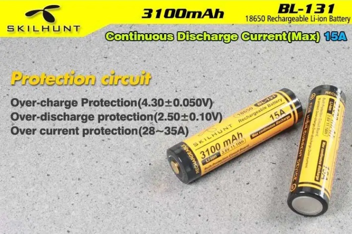 Skilhunt BL-111 — защищённый Li-ion перезаряжаемый аккумулятор формата 18650 ёмкостью 3100mAh